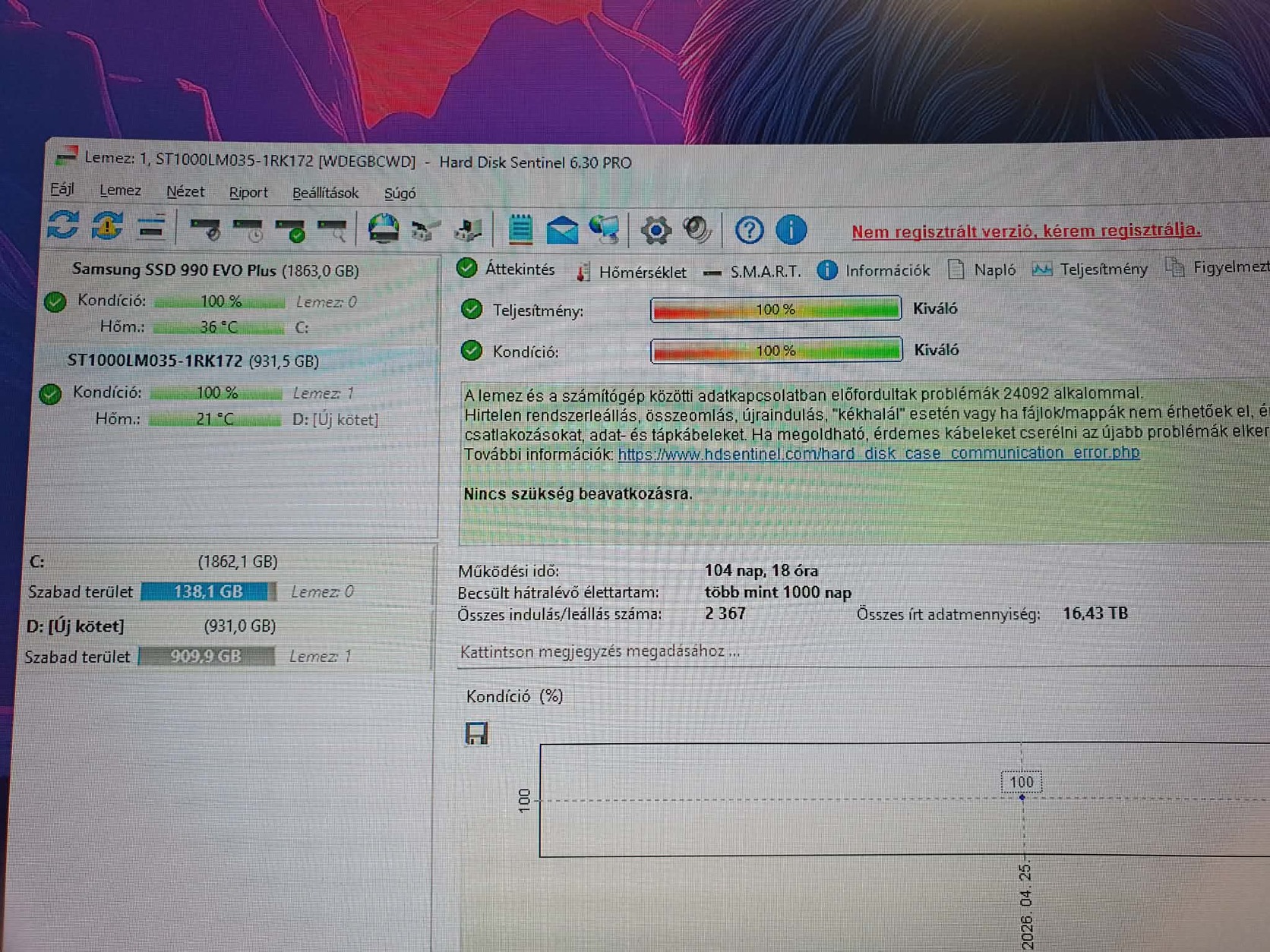 Seagate 1Tb notebook hdd 100/100