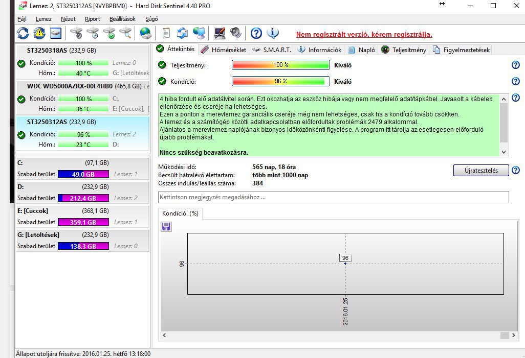 Eladó egy 250 GB-os HDD. Kondíciója 96%-os emiatt ennyi.