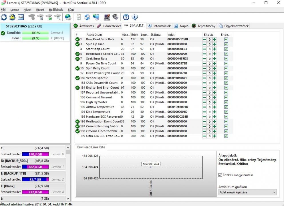 HDD Sentinel értékek a mellékelt fotókon.
