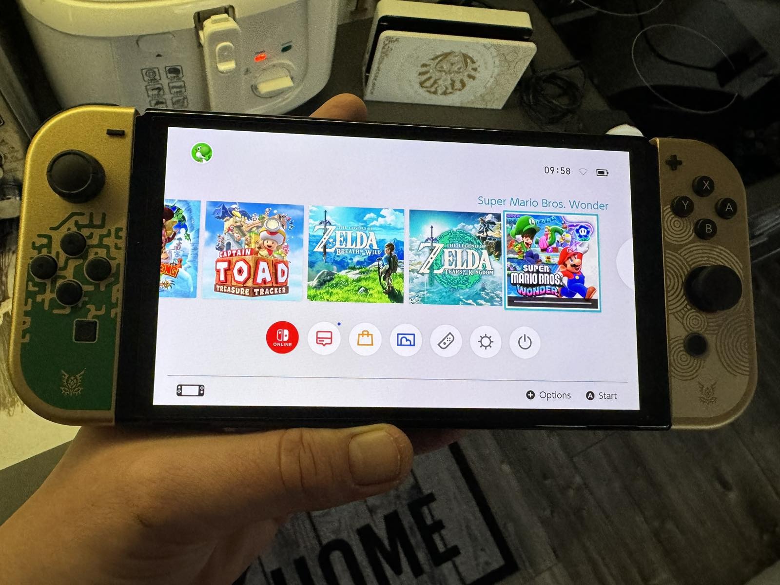 Limited Zelda kiadású Oled Nintendo Switch 64GB alapgép,Dobozában, összes vele járó tartozékával: grip,gyári töltő,hdmi kábel,dokkoló,2db strap a joy-conokra