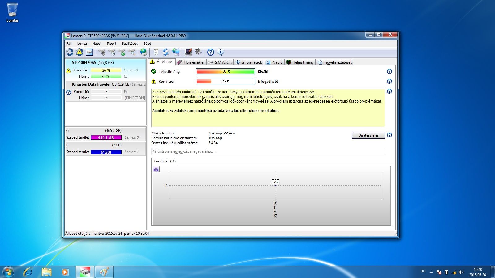 Eladó egy Seagate ST9500420AS típusú 500GB-s notivinyó. 100/26%-s, ennek ellenére nem érződik, hogy baja lenne, hibátlanul települt egy windows 7 is rá, utána néztem, hogy 26%-s.
