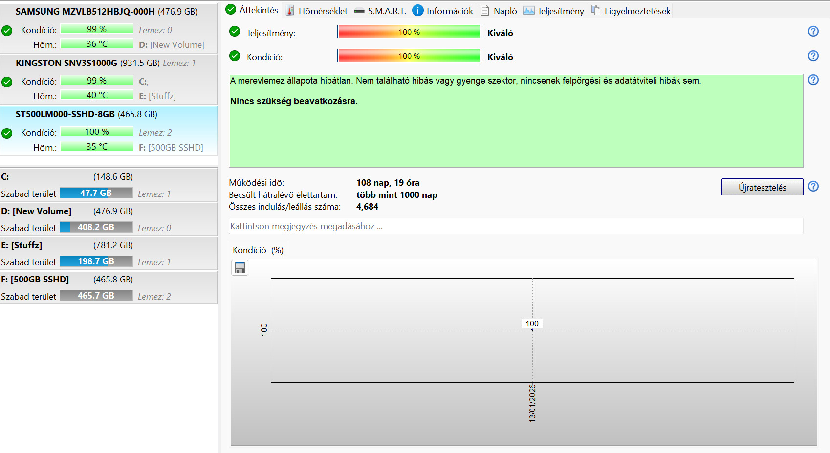 500GB Seagate SSHD Laptop/Notebookba - 100%-os
