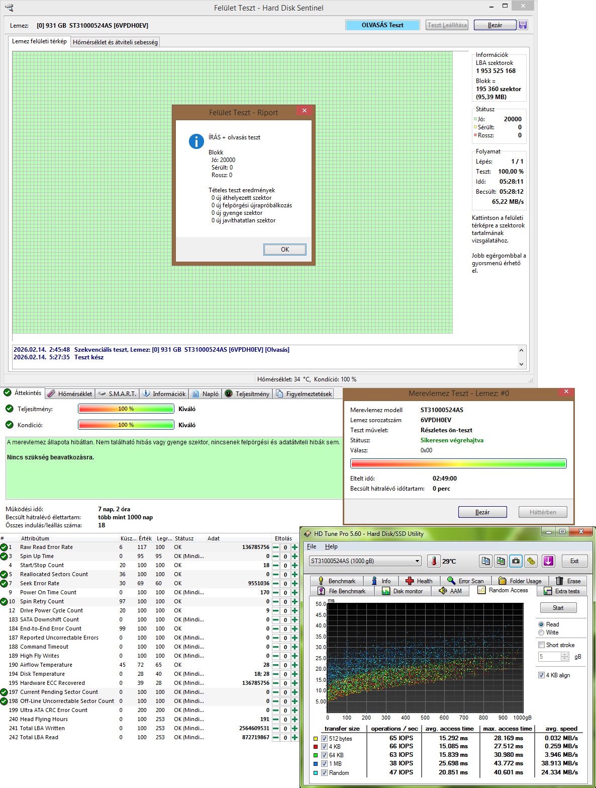 Teljes írás olvasás teszt és hosszú önteszt lefutott.