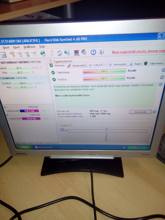 Eladó a képeken látható 160GB HDD. Használt, de HD Sentinel eredmény: 100/100