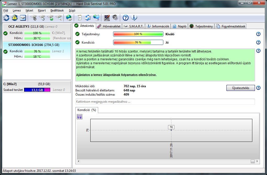 A HDD a hibás sectorok ellenére tökéletesen működik.