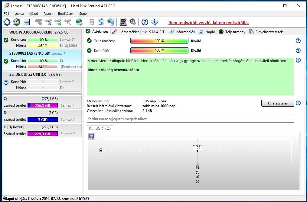 HD Sentinel szerint 100/100-as de eléggé melegszik de ezt leszámítva működik. . Átvehető Szegeden vagy posta.
