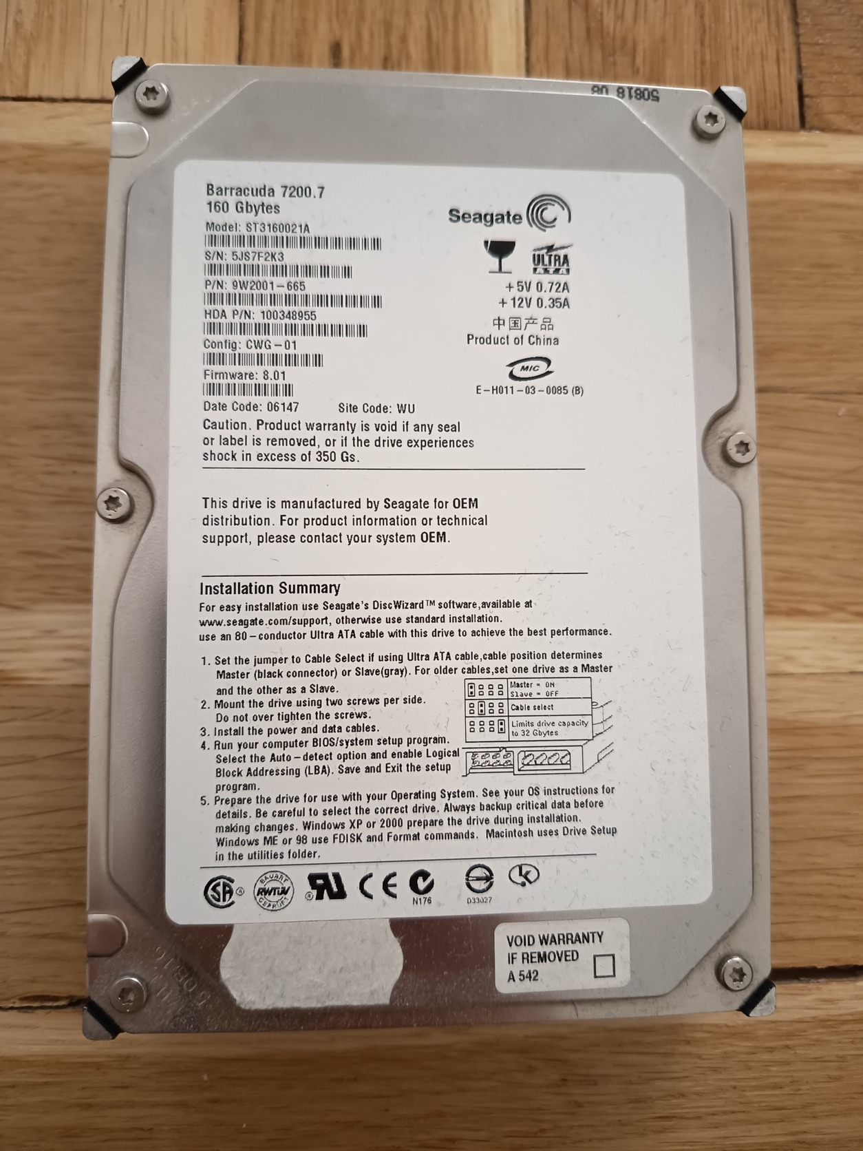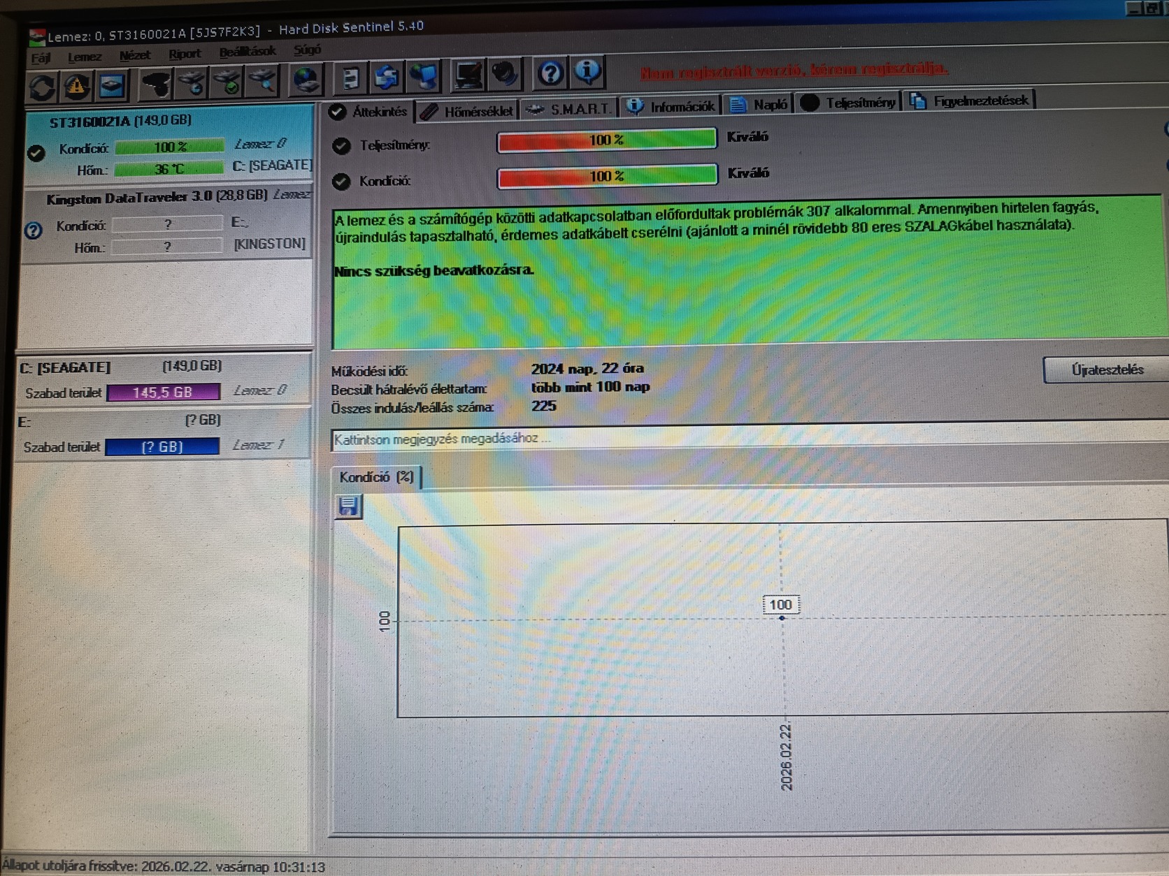 Jegelve – Seagate Barracuda IDE 160 GB 100/100% merevlemez
