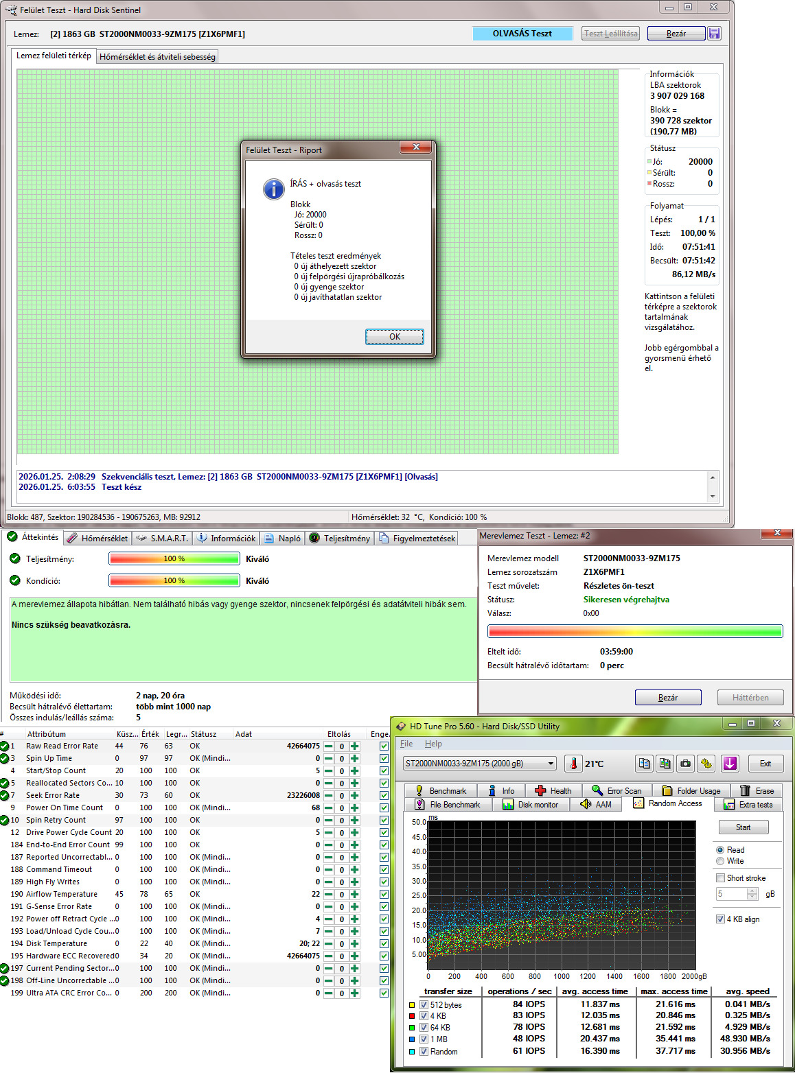 1. ST2000NM0033-9ZM175 - 2TB - 7200RPM - 128MB Cache - 2nap 20óra 5indulás - 16k