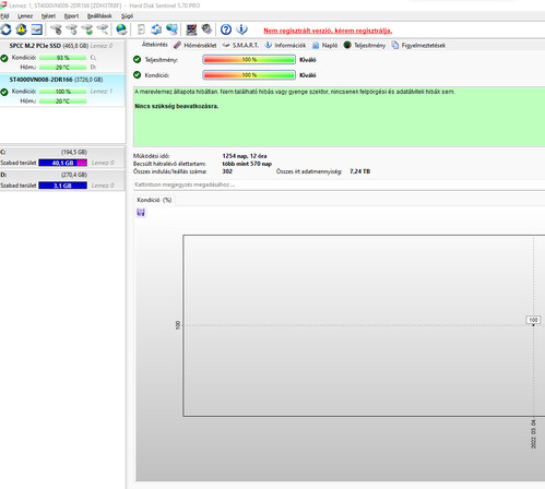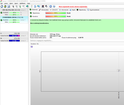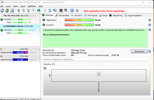 mind a 4 db 100%-os, max 40 C fok az élettartam alatt és 260-290 leállás. NAS-ban voltak 2db filmek ezeken az össz IT adatmennyiség 4 és 7 TB a másikon adatok ott RAID1-ben 12,8 TB. Tehát nem leharcolt darabok.