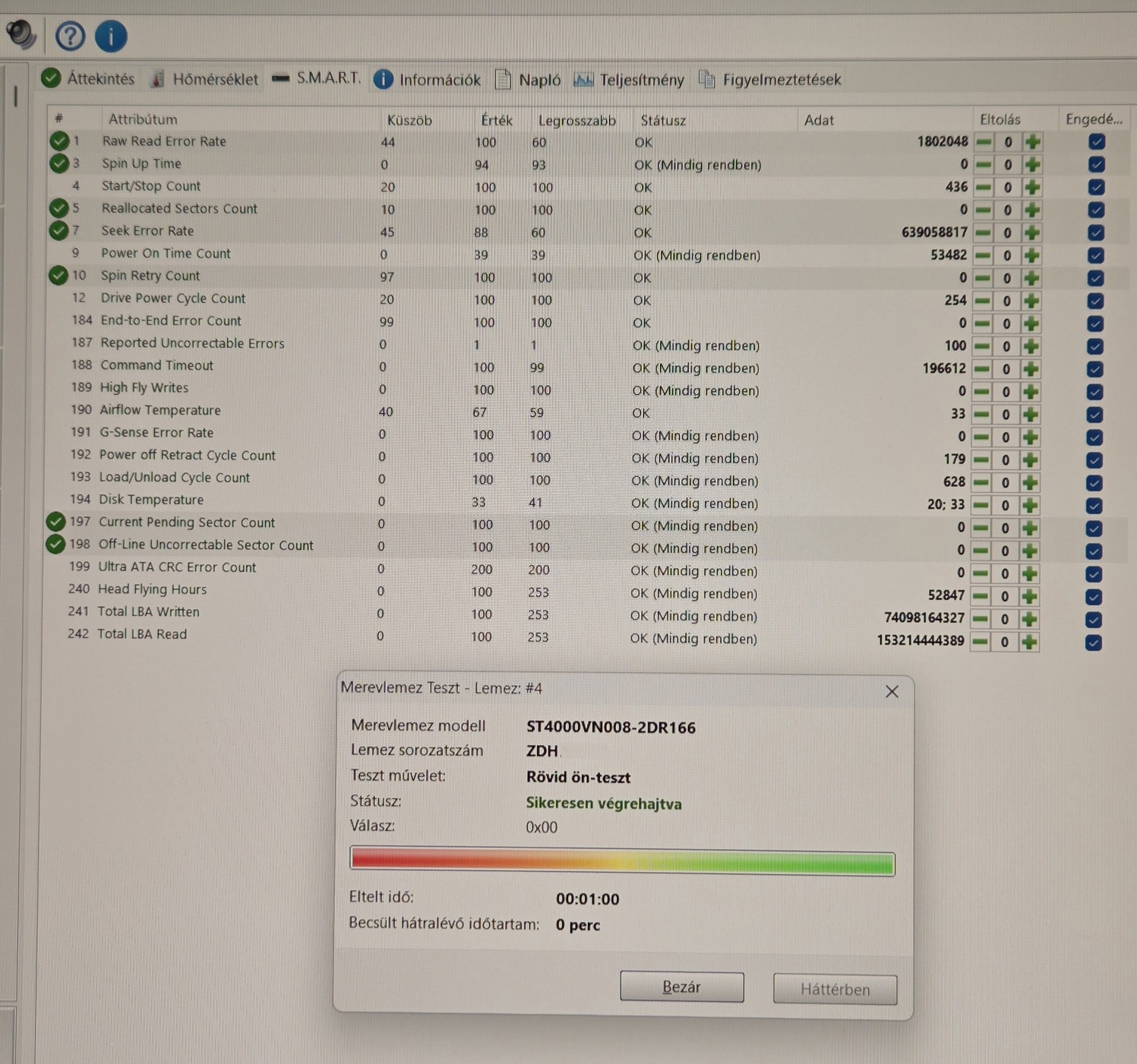Seagate Ironwolf ST4000VN008 4TB CMR HDD eladó. Külső házban volt használva mentésekre. HDSentinel és SeaTools képek mellékelve. 100/99
