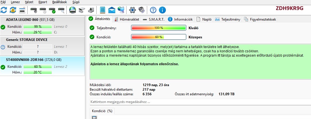 ST4000VN008-2DR166 ZDH9KR9G Ironwolf 4tb 60% 40 bad sector - 10.000FtA bad sector októberi hd sentinel logon is ugyanennyi volt.Őrá nincs garancia.