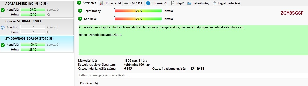 ST4000VN008-2DR166 ZGY85G6F Ironwolf 4tb 100% - 35.000Ft
