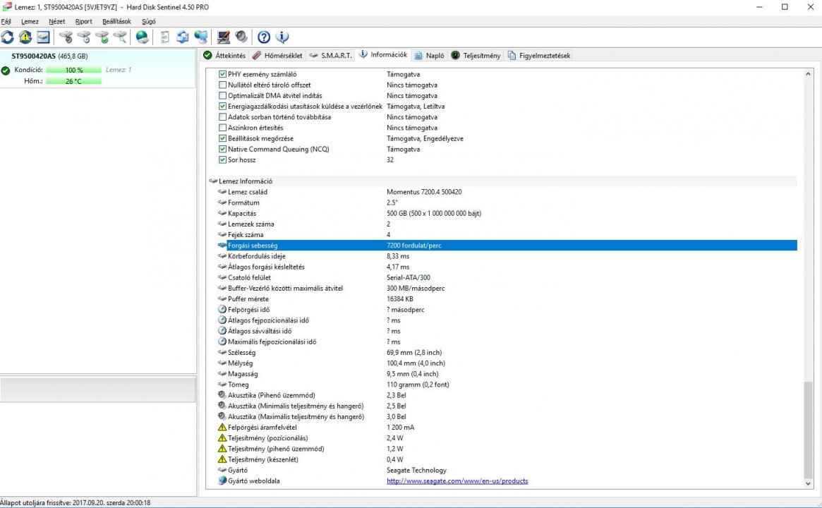Eladó 1 db Seagate Momentus 500 GB-os 2,5" HDD. SATA3-as 3.0 Gb/sec, 7200rpm.Típus: ST9500420AS. HD Sentinel alapján 100/100% kifogástalan állapotban. Képeket mellékeltem.