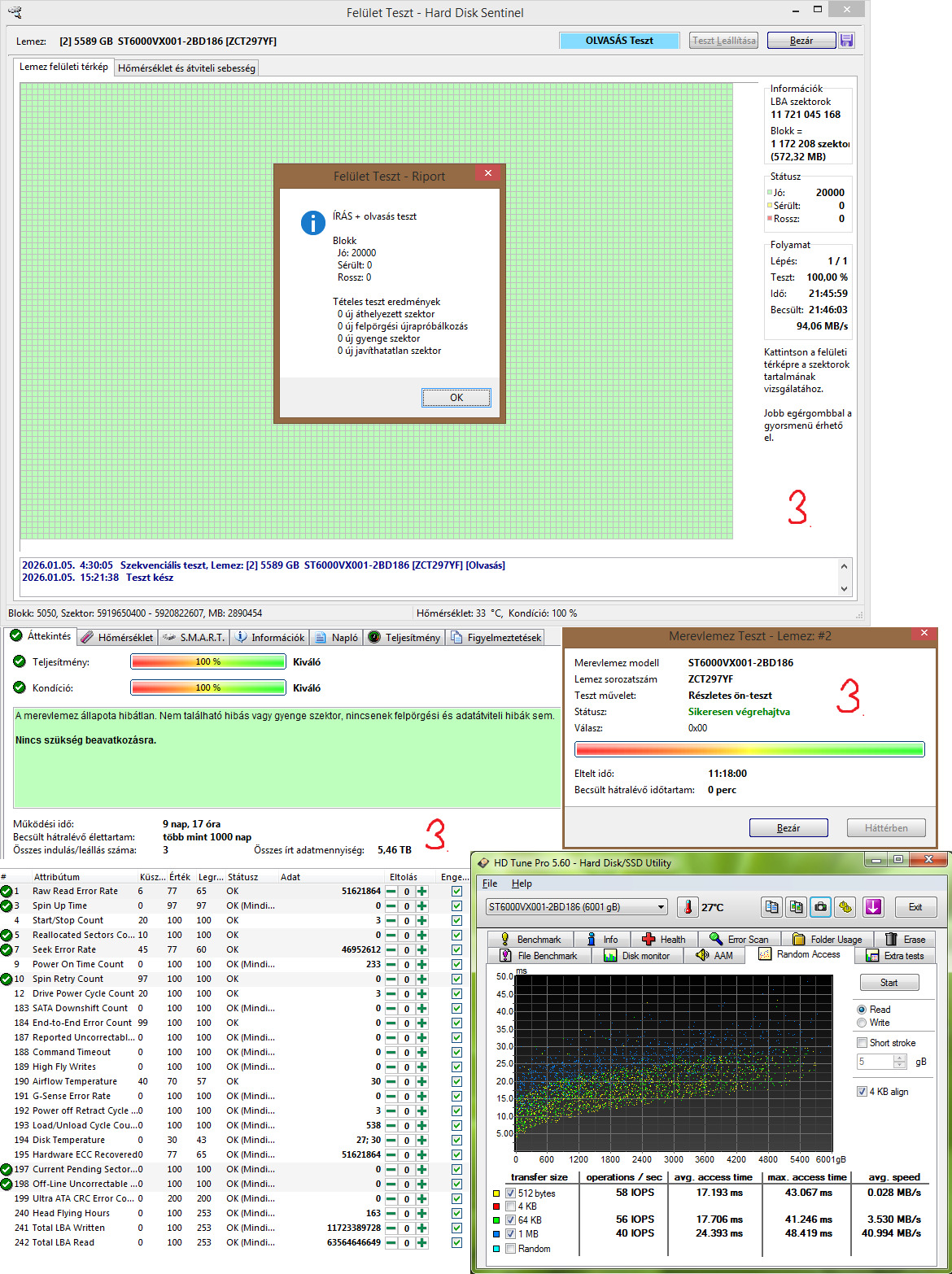 3. ST6000VX001 - 6TB - 5400RPM - 256MB Cache - 9nap 17óra 3indulás - 38k
