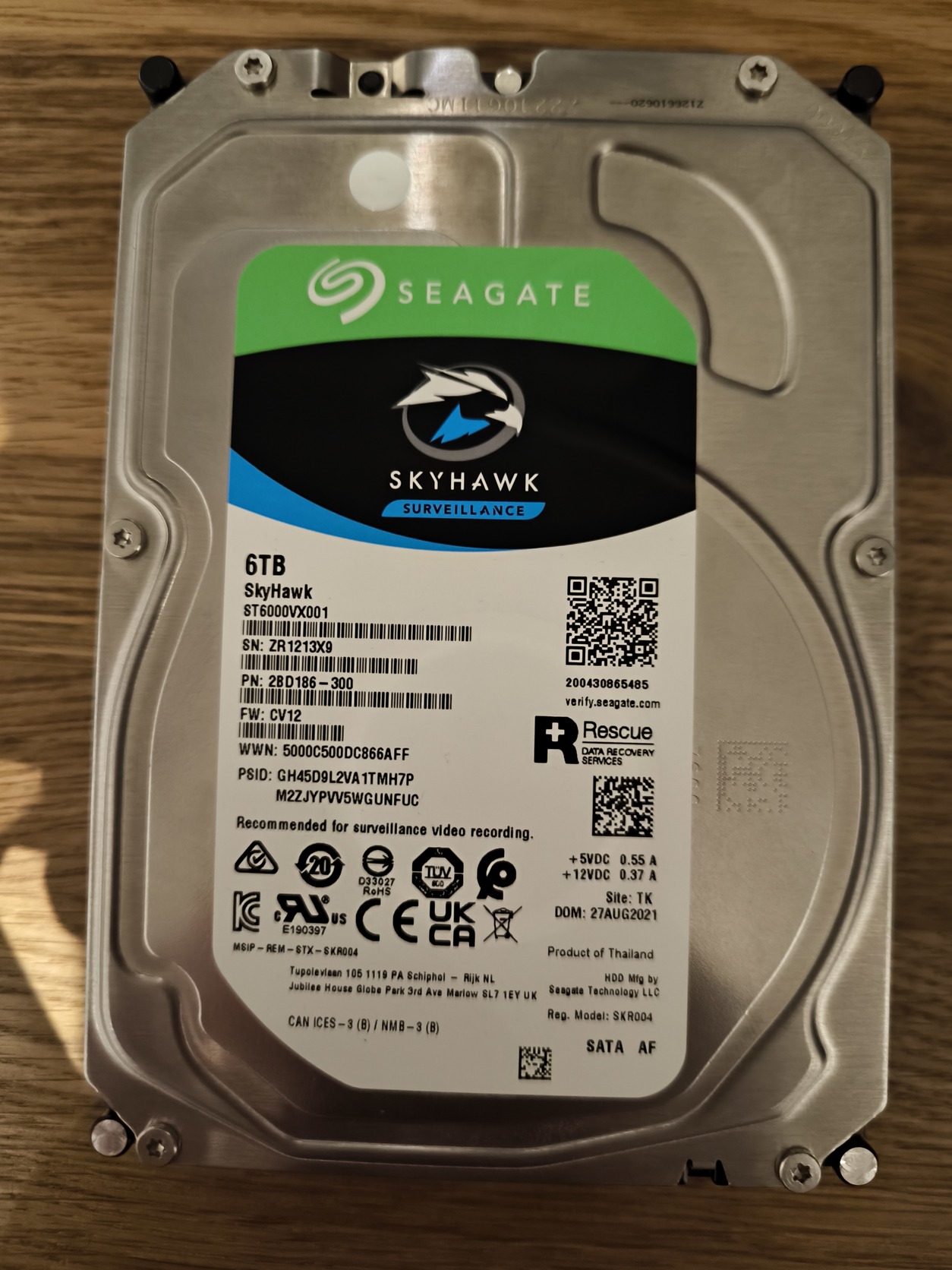 Seagate Skyhawk 6TB 256mb, nasben volt a 2. Hdd, adat nemsok került rá, képen latható.