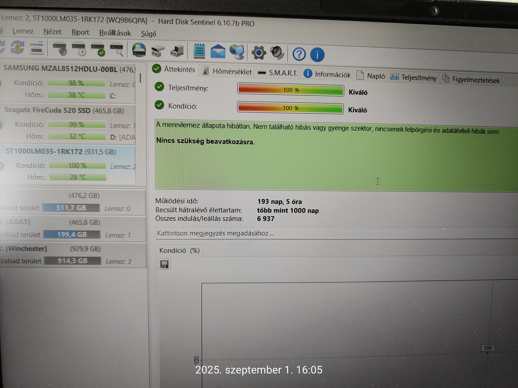 Eladó Seagate ST1000LM035 1TB 1000GB 2,5" SATA HDD. Hibátlan működéssel, keveset futott darab. HDSentinel kép mellékelve.