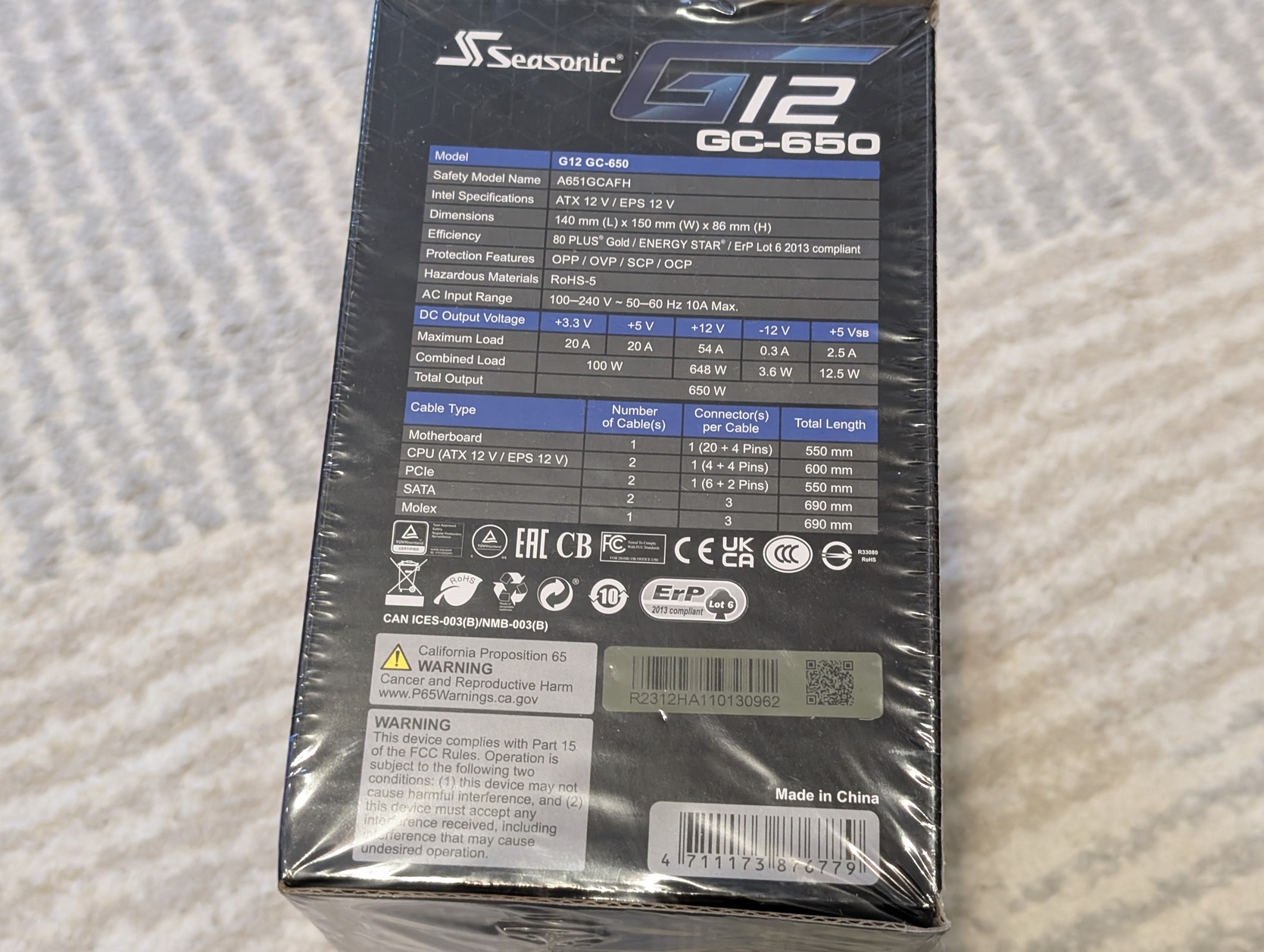 Eladó egy Seasonic G12 GC-650 -es bontatlan, teljesen új tápegység.