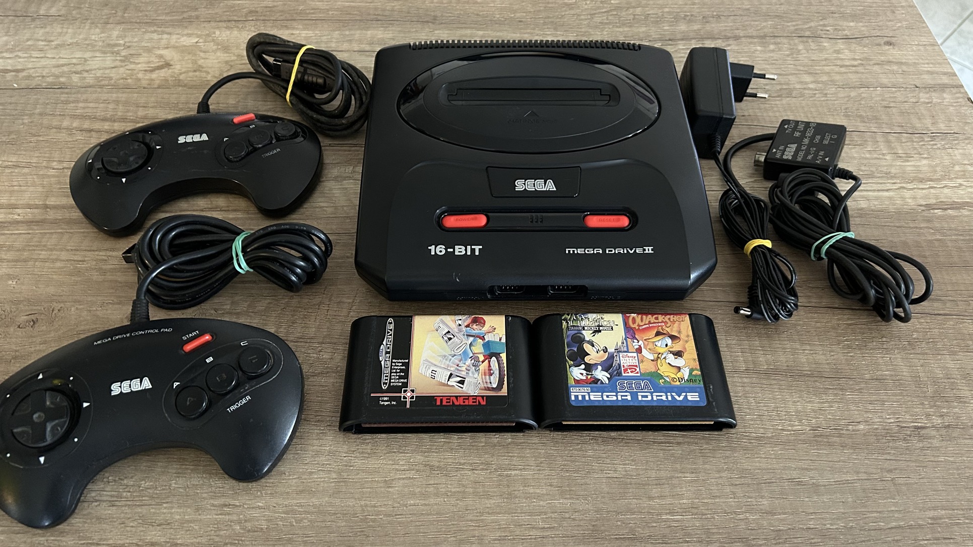 Eladó a képeken látható nagyon szép állapotú Sega konzol és hozzá két Kontroller két játék.