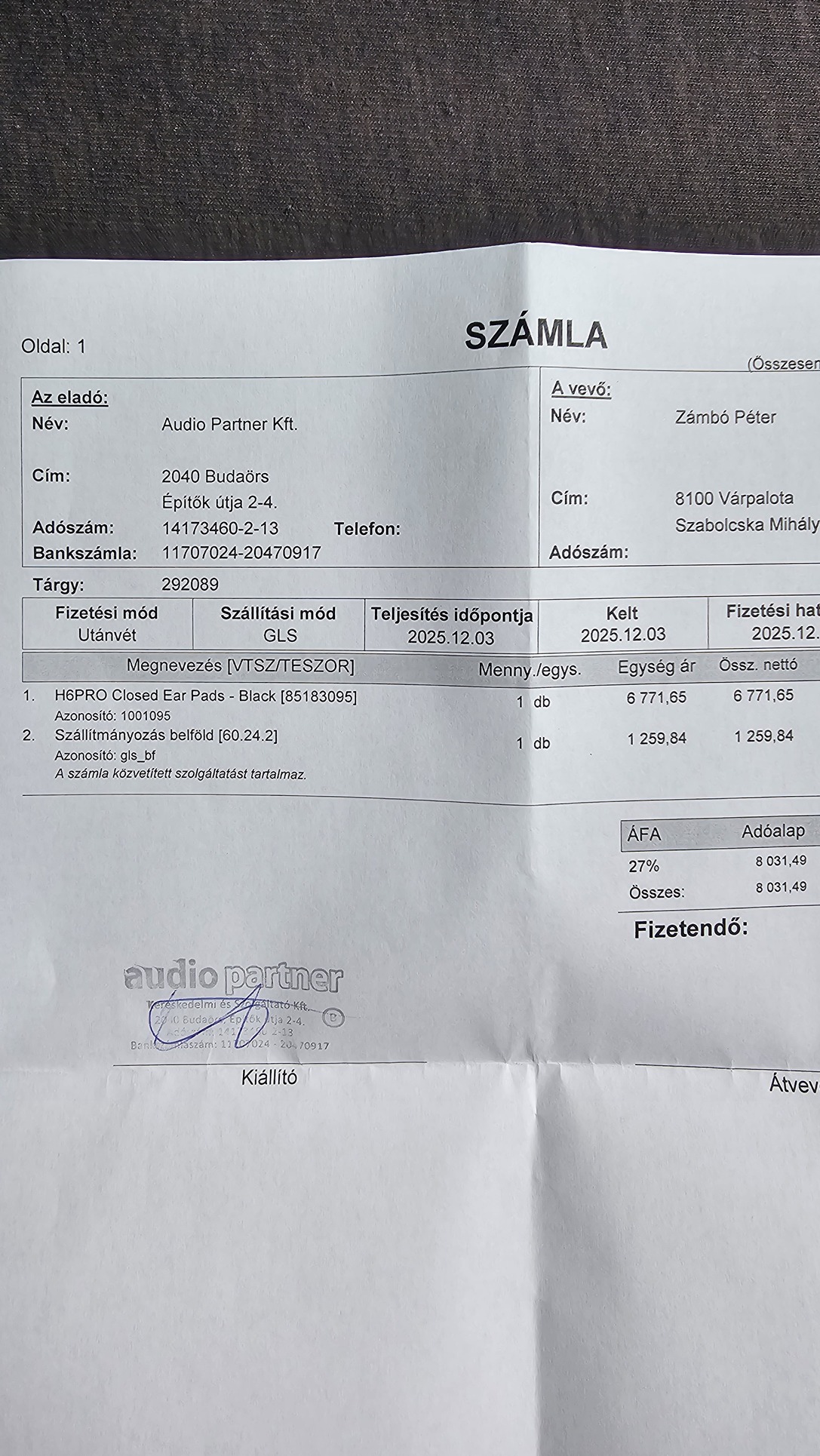 -Most vettem hozzá csere fülpárnát,számla van róla.
