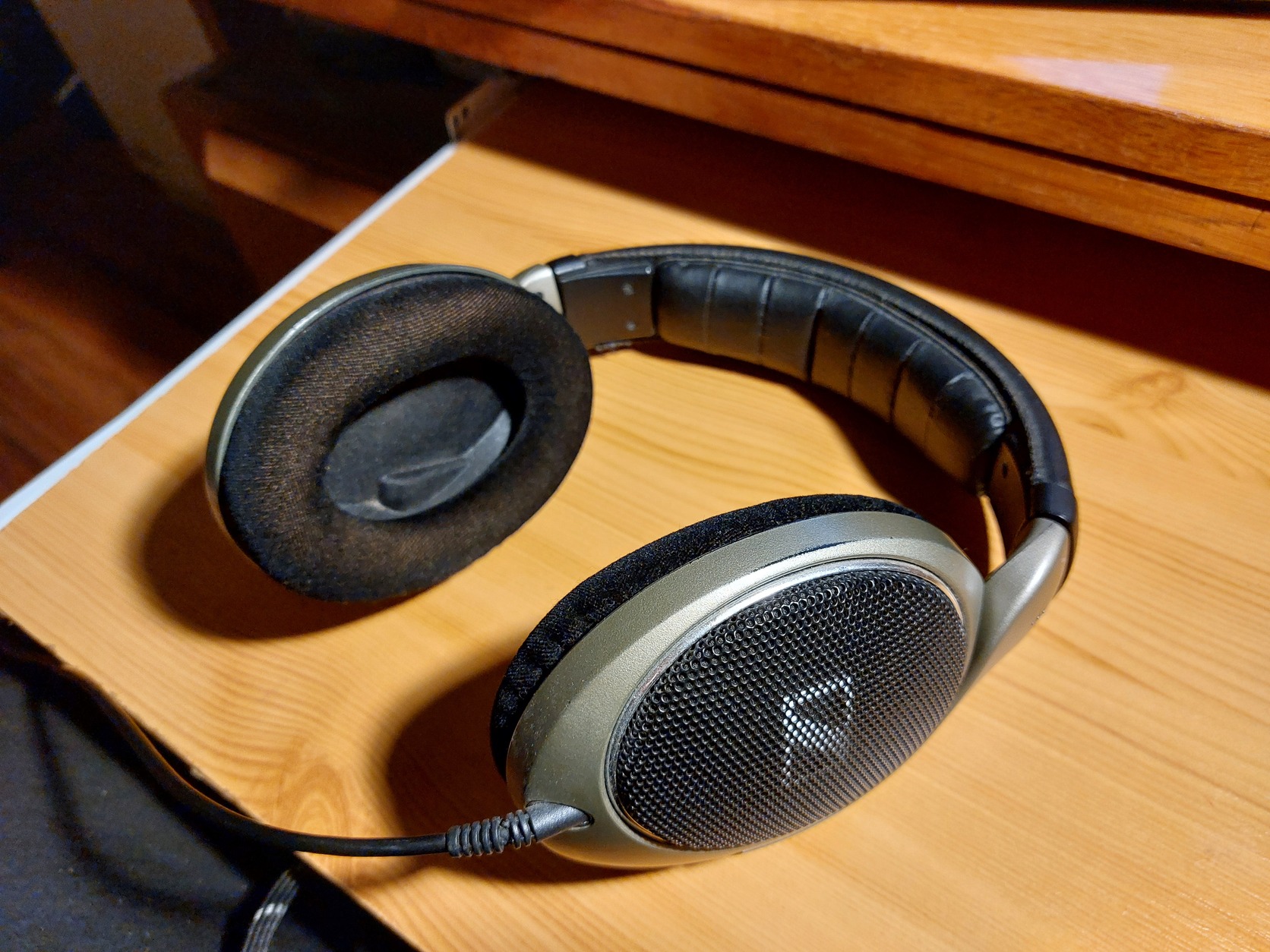 Doboza nincs meg. Szokásos hajszálrepedés a fejpánt két oldalán, de a használatot nem befolyásolja. A fülpárnák és fejpánt is jó állapotú.