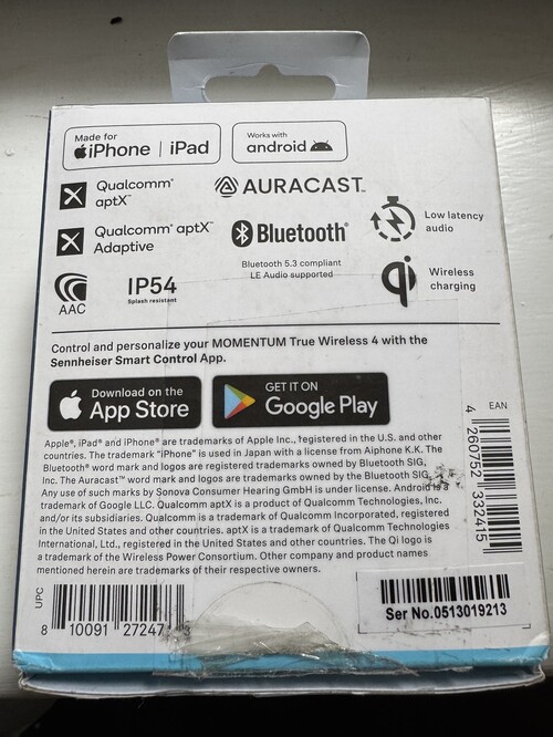 Eladó garanciában cserélt (én hibámból mert leejtettem) vadi új Sennheiser momentum true wireless 4 füllhallgató. A doboz eredeti, de minden tartozék a füllhallgató is teljesen új egyszer sem használt.