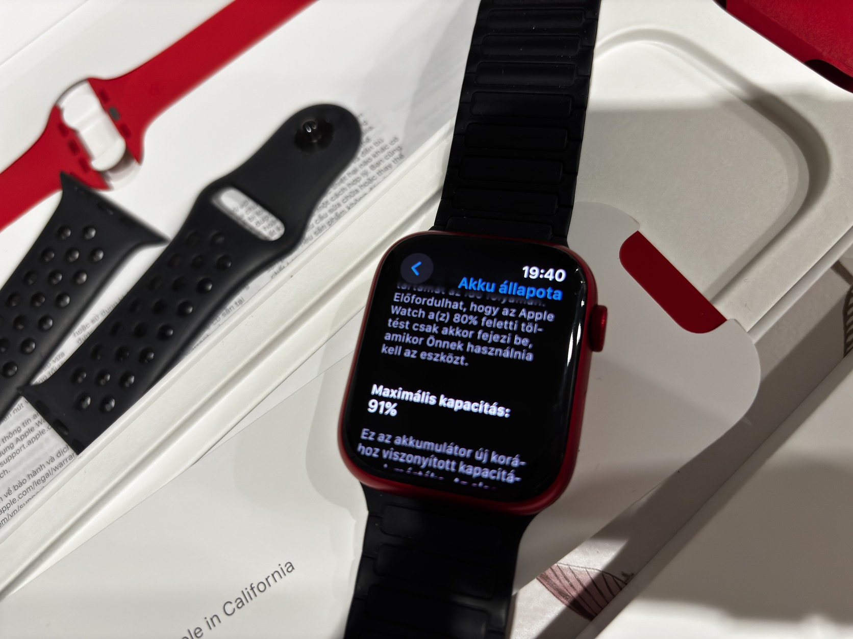 Karcmentes, kijelzőn fólia, 91% akku, gyári szíja még nem lett kivéve a dobozból, +eredeti apple nike szíj, plusz egy mágneses ami jelenleg rajta van, gyári dobozban.