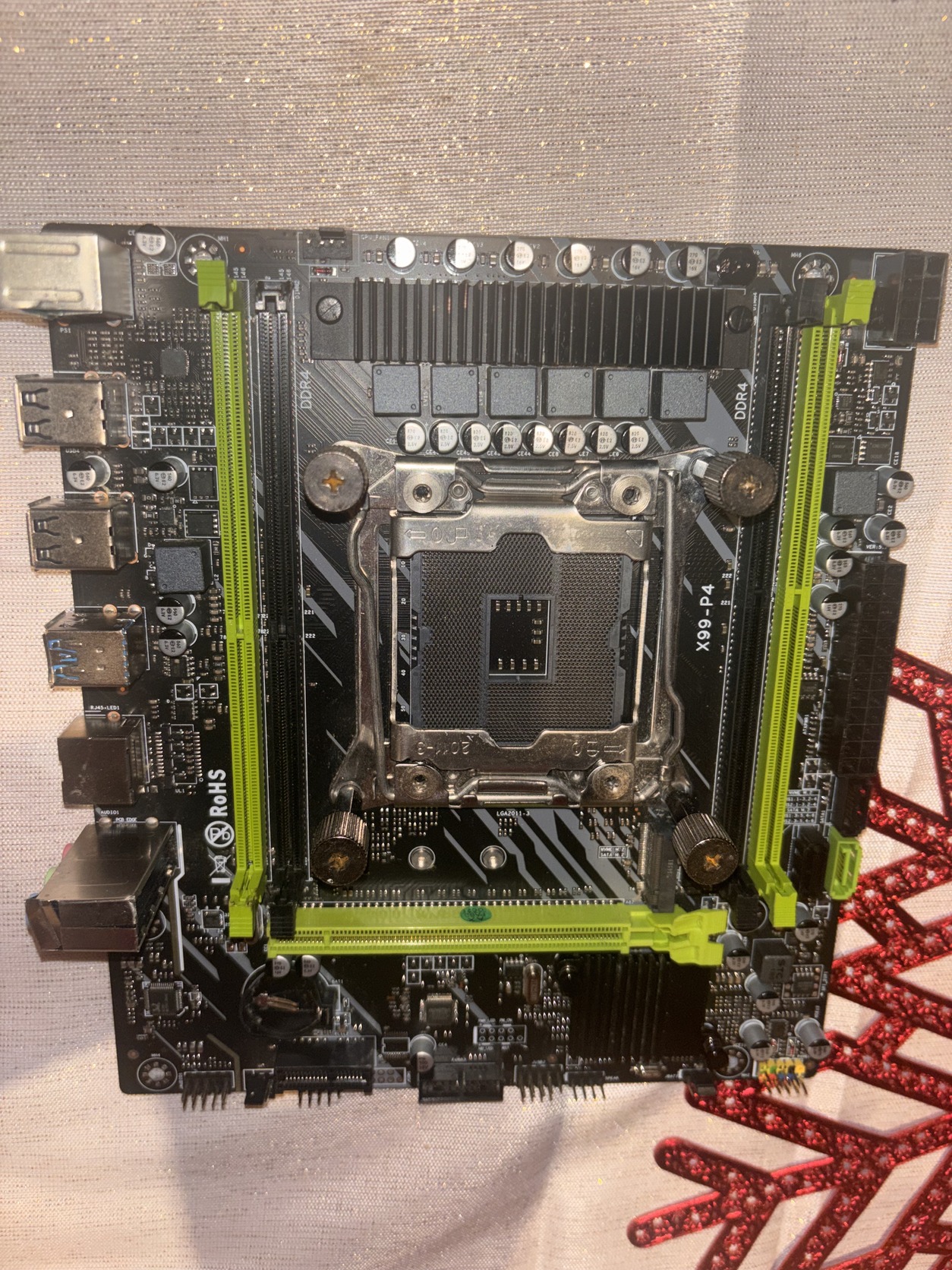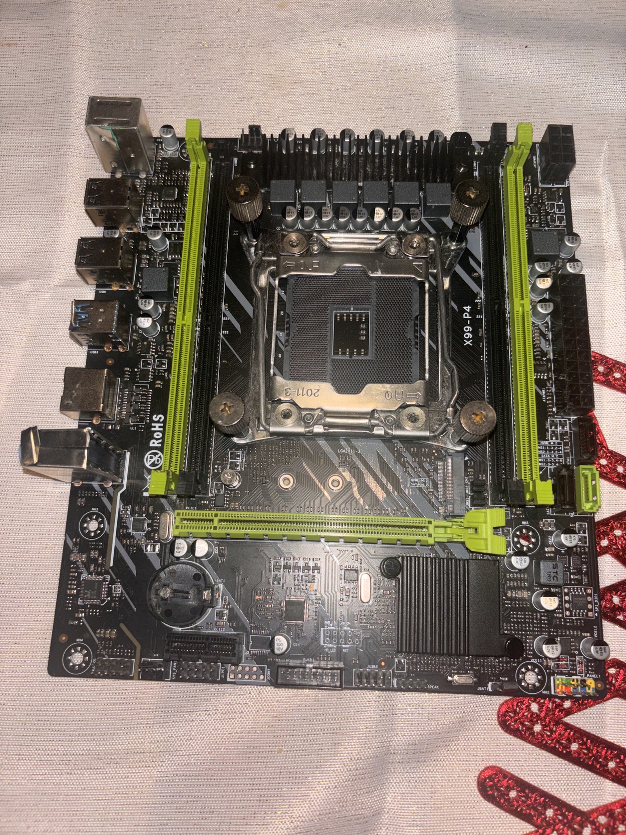 teszteletlen X99 P4 LGA 2011 3 alaplap, sérülések: ps2 /usb3/hang csatlakozok burkolata, 1 memória foglalat rögzítő hiánya! 1700 Ft.