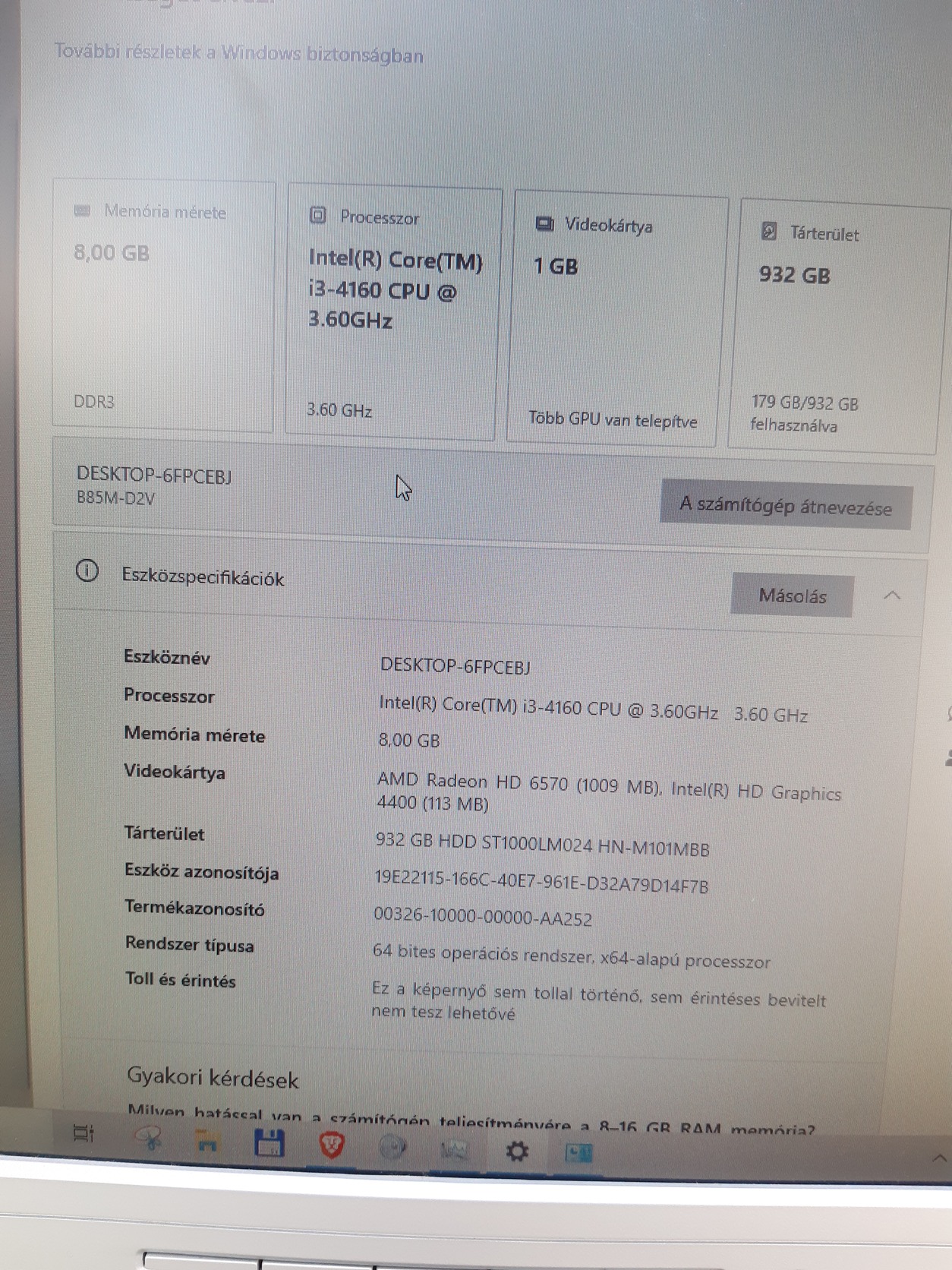 Néhány paraméter: Gigabyte B85MD2V alaplap, 8GB RAM, i3-4160 processzor, AMD Radeon HD 6570 gpu 1GB, CD/DVD meghajtó, 1TB HDD. Emellett: 17" monitor, ps2 egér és billenytűzet.