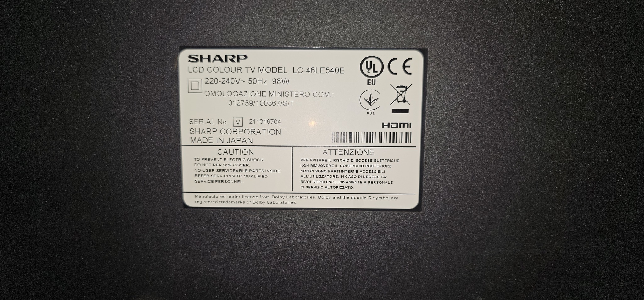 SHARP LC-46LE540E 46