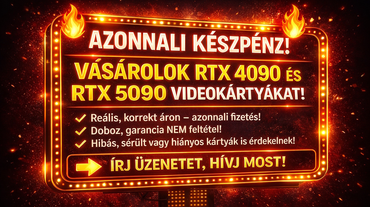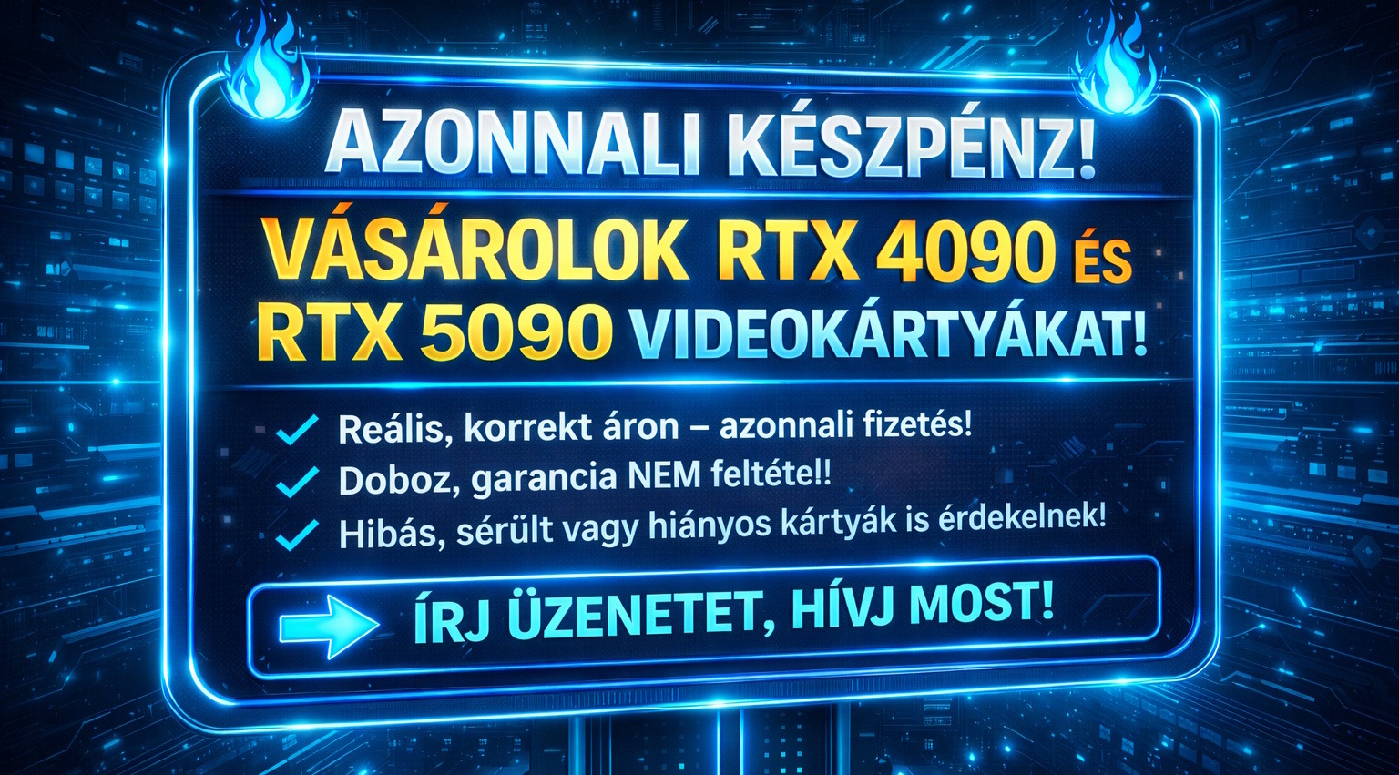 AZONNAL VÁSÁROLOK RTX 4090 és RTX 5090 videokártyákat! Akár nem működő, hiányos, sérült is lehet!