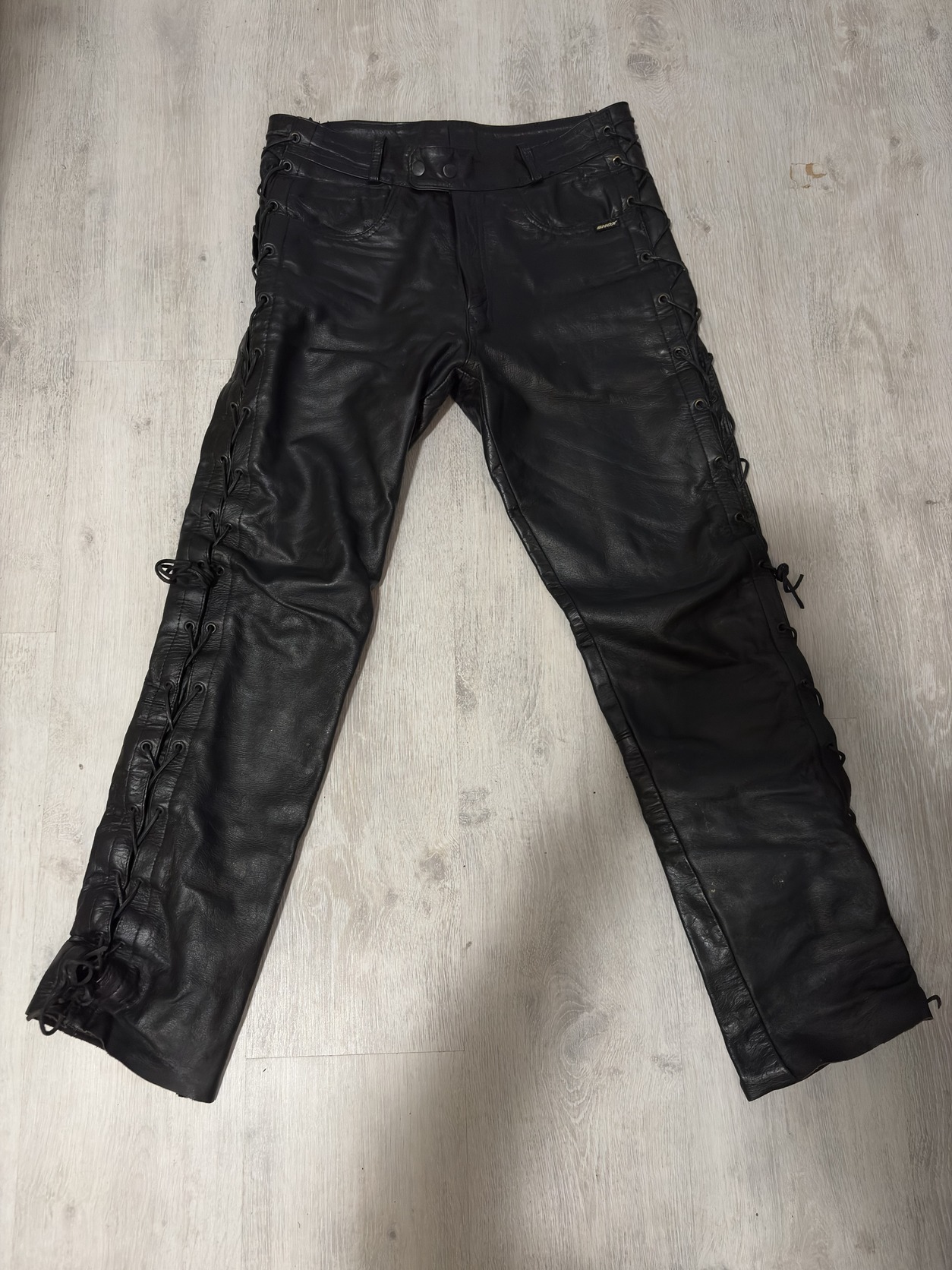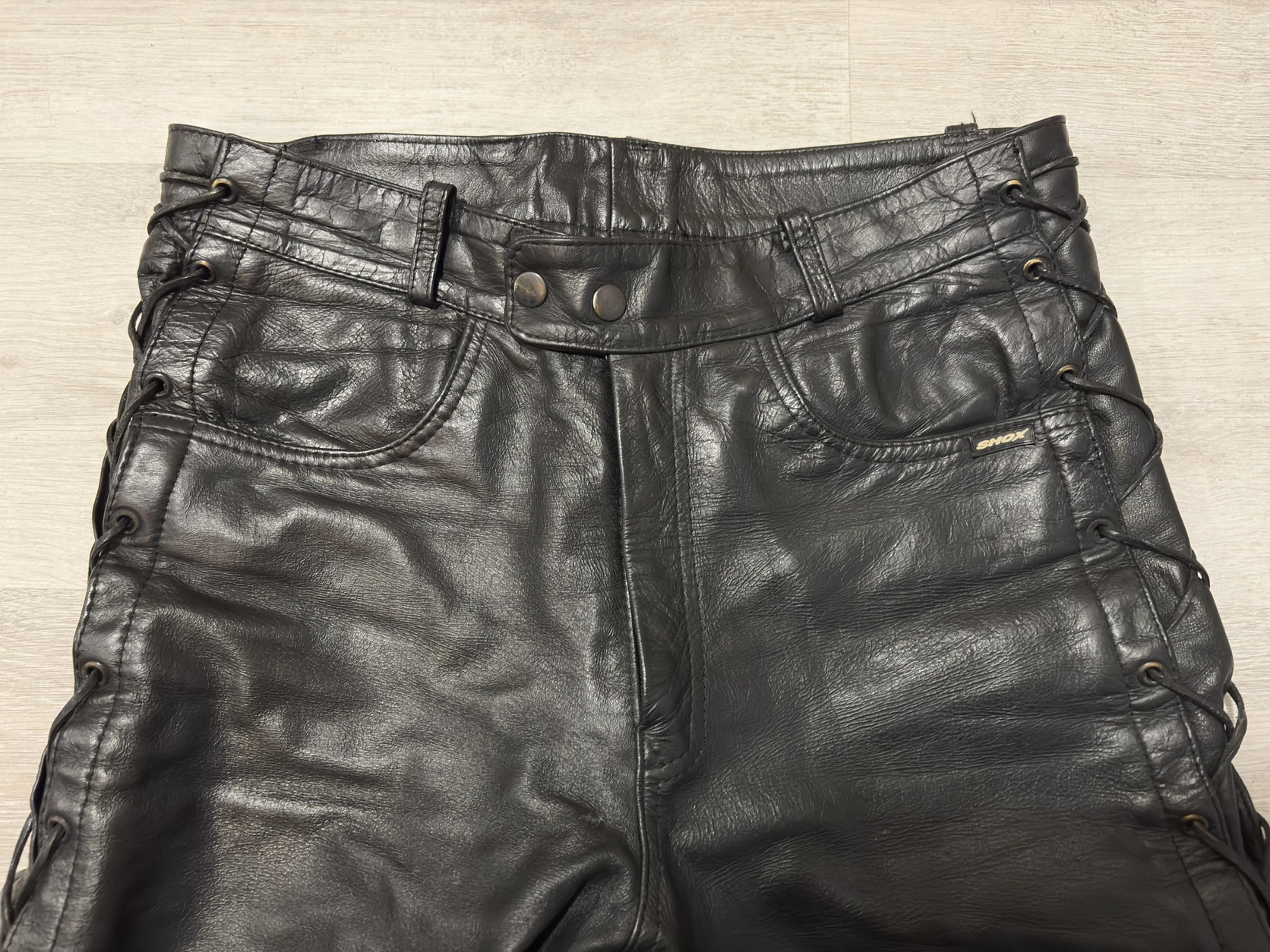Shox oldaltfűzős valódi bőrnadrág