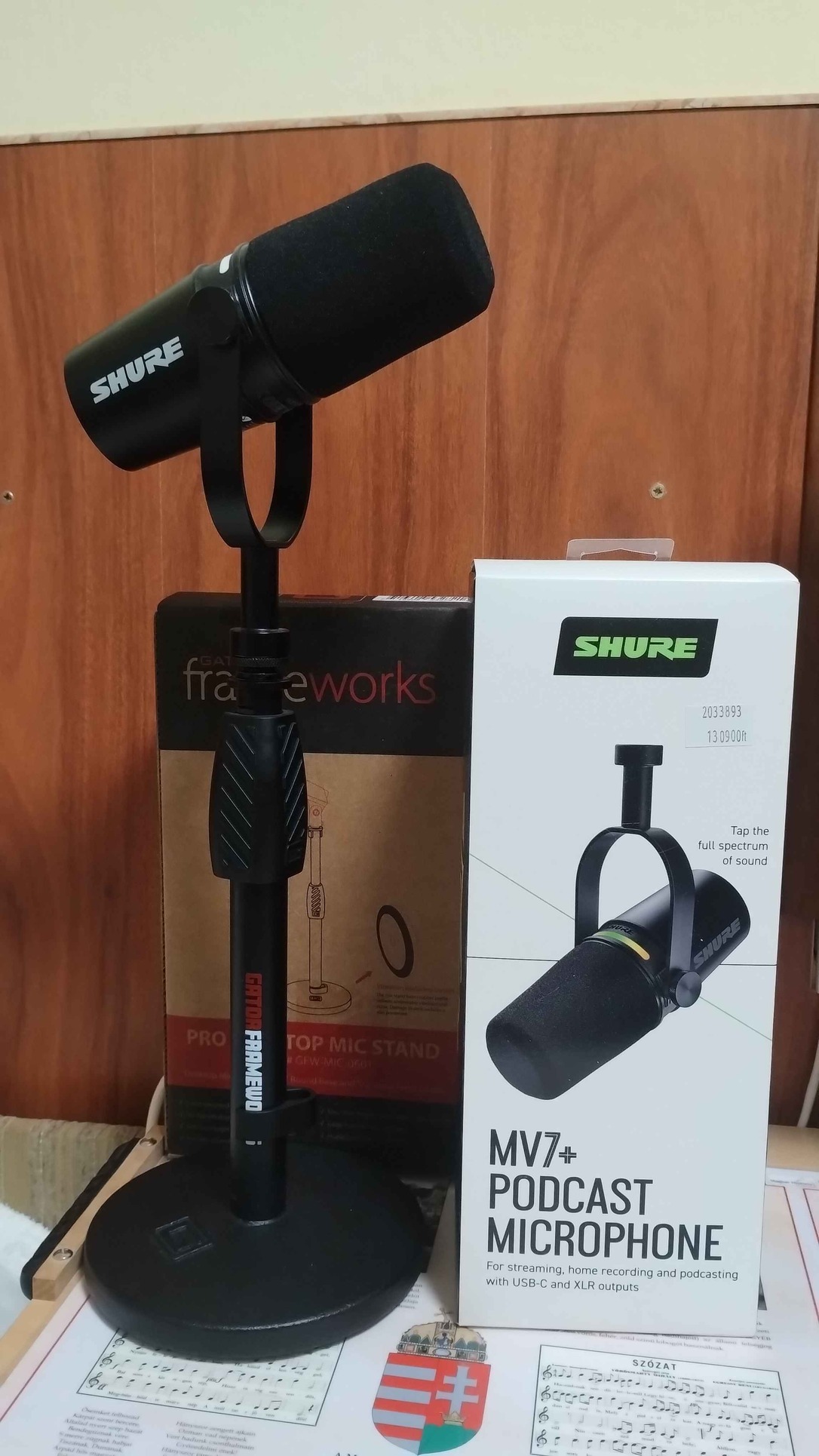 Shure MV7+ Mikrofon + Gator Frameworks asztali mikrofonállvány