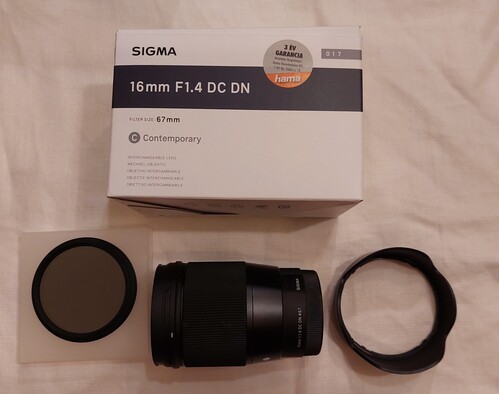 Sigma 16mm F1.4 DC DN, E-mount + K&F Concept Slim vario ND 2-400 filter