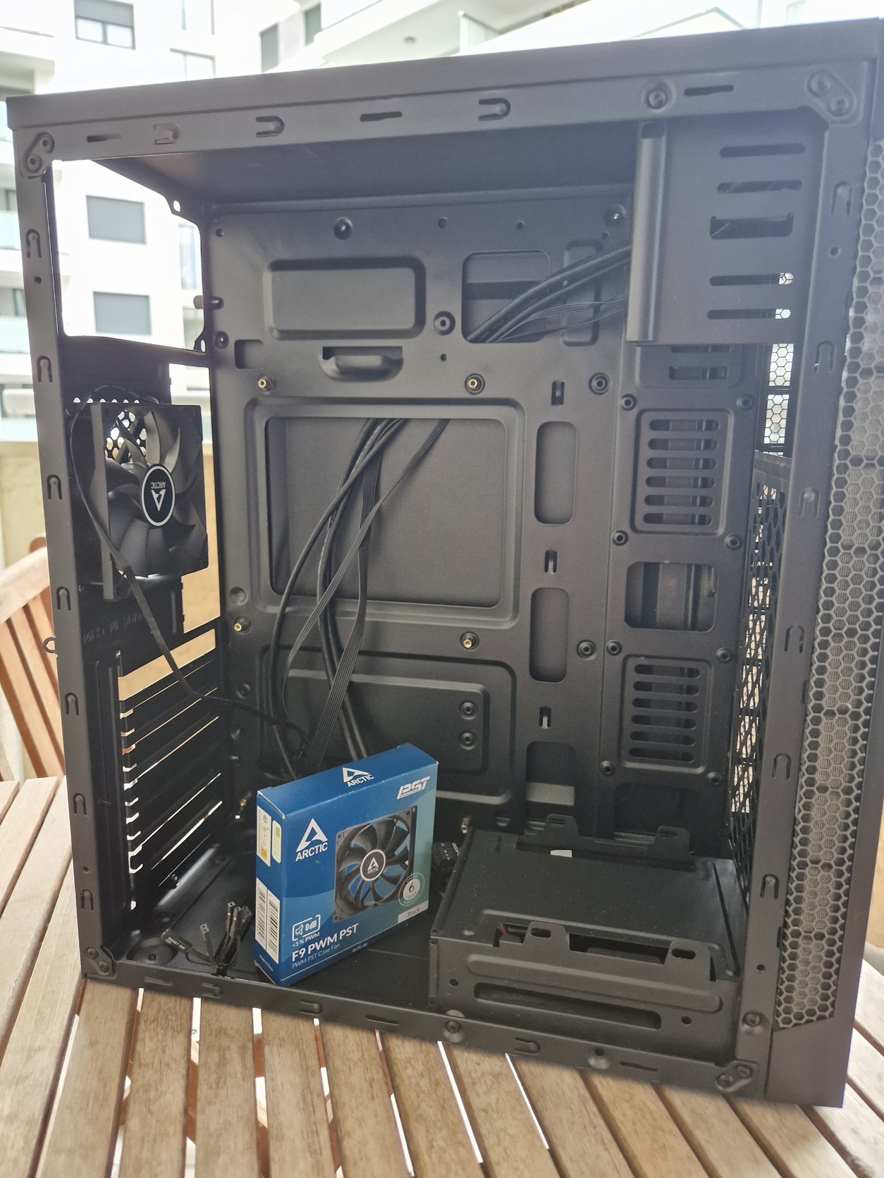 A gyári kis venti cserélve lett nagyobb ARCTIC-ra, ami alig ment (9 centisre) de adom hozzá a gyárit is