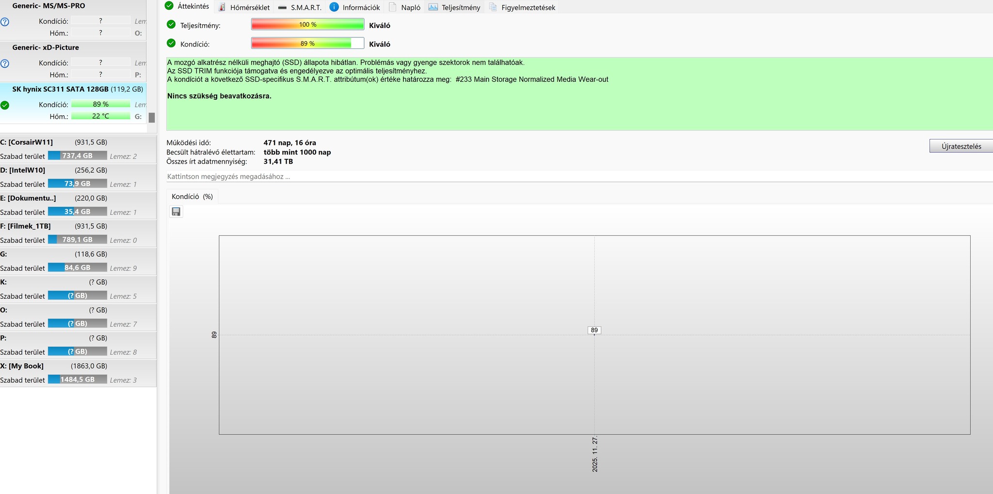 Eladó 1 db SK Hynix SC311 típusú SSD kitűnő állapotban.