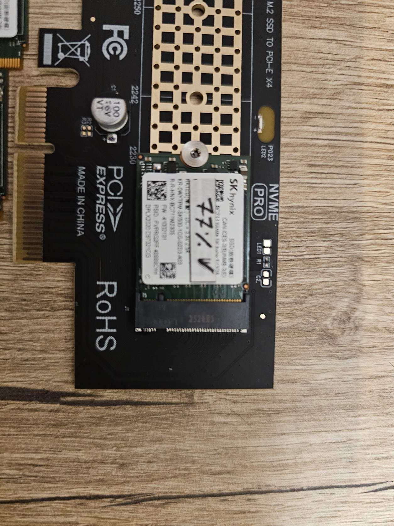 FIGYELEM: A képeken látható fekete PCIe bővítőkártya NEM része az ajánlatnak, csak a teszteléshez és a méretarány szemléltetéséhez szerepel a fotón! Az ár kizárólag a kis méretű SSD-re vonatkozik.