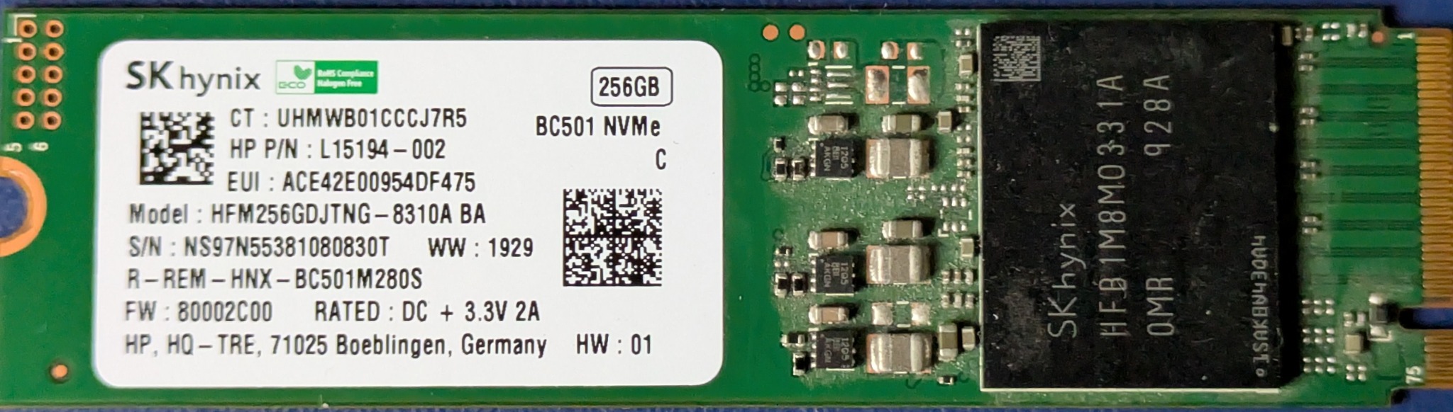 Eladó egy SK Hynix NVMe 256 GB SSD, teljesen hibátlan, tesztelt állapotban.