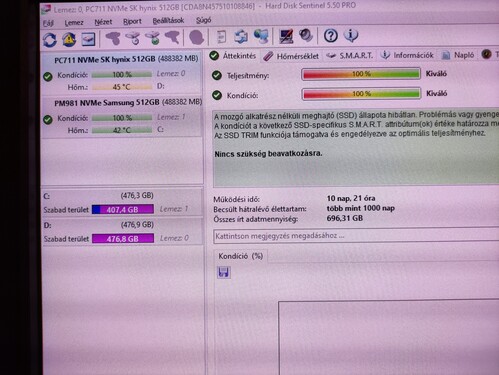 - TRIM támogatás, S.M.A.R.T támogatás