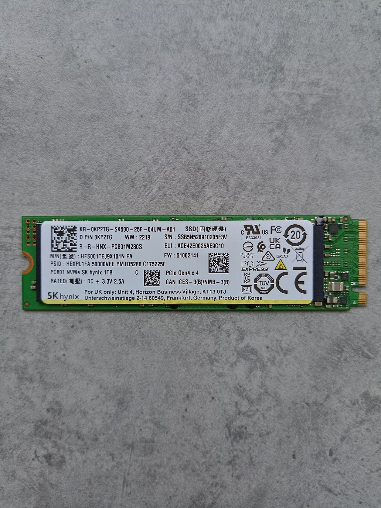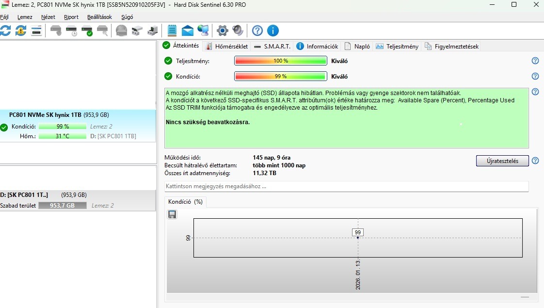 SK Hynix PC801 1TB Gen 4. 100/99