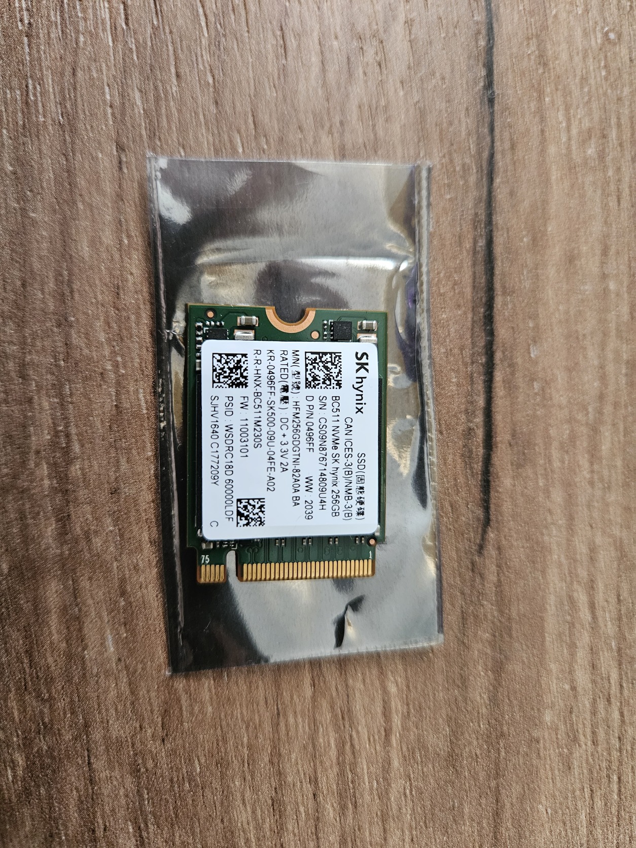 2230-as SK hynx BC511 256GB NVMe SSD.