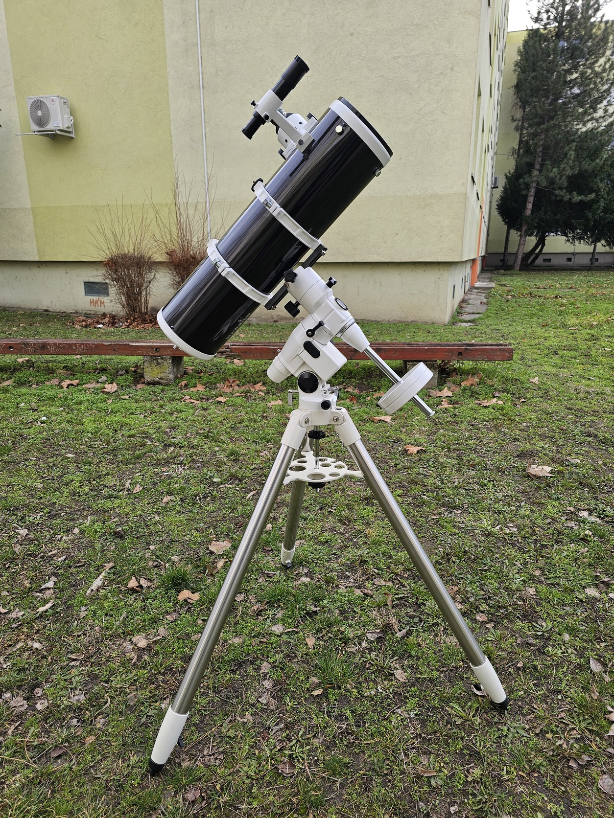 Eladó a címben említett Skywatcher 150/750-es csillagász távcső EQ5 mechanikával, 2 db 5kg-os ellensúllyal, 6x30-as keresőtávcsővel és minden gyári kiegészítőjével.