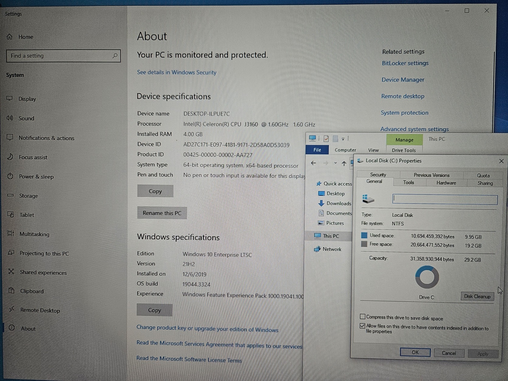 - jelenleg egy tiny Windows 10 fut rajta