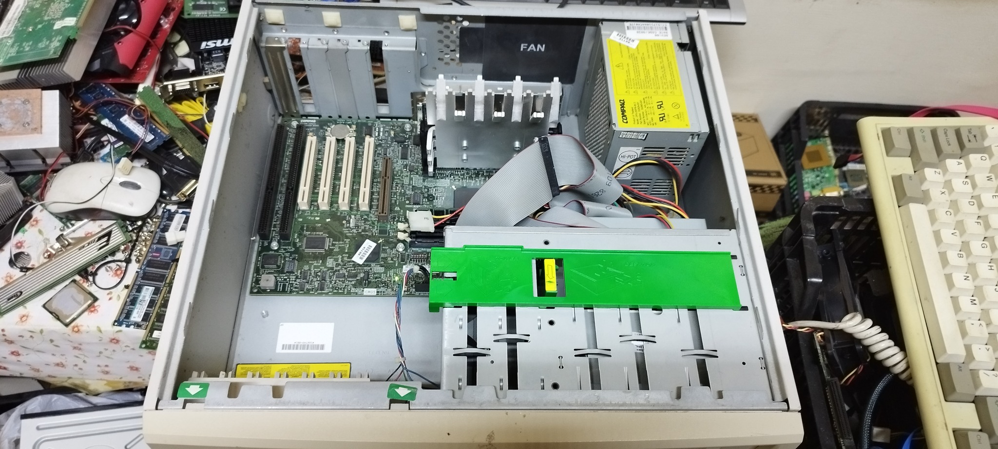 Gyári ház, gyári táp, ide optikai meghajtó, kis floppy, Pentium II 350MHz passzív cpu, 1x128mb sd-ram.