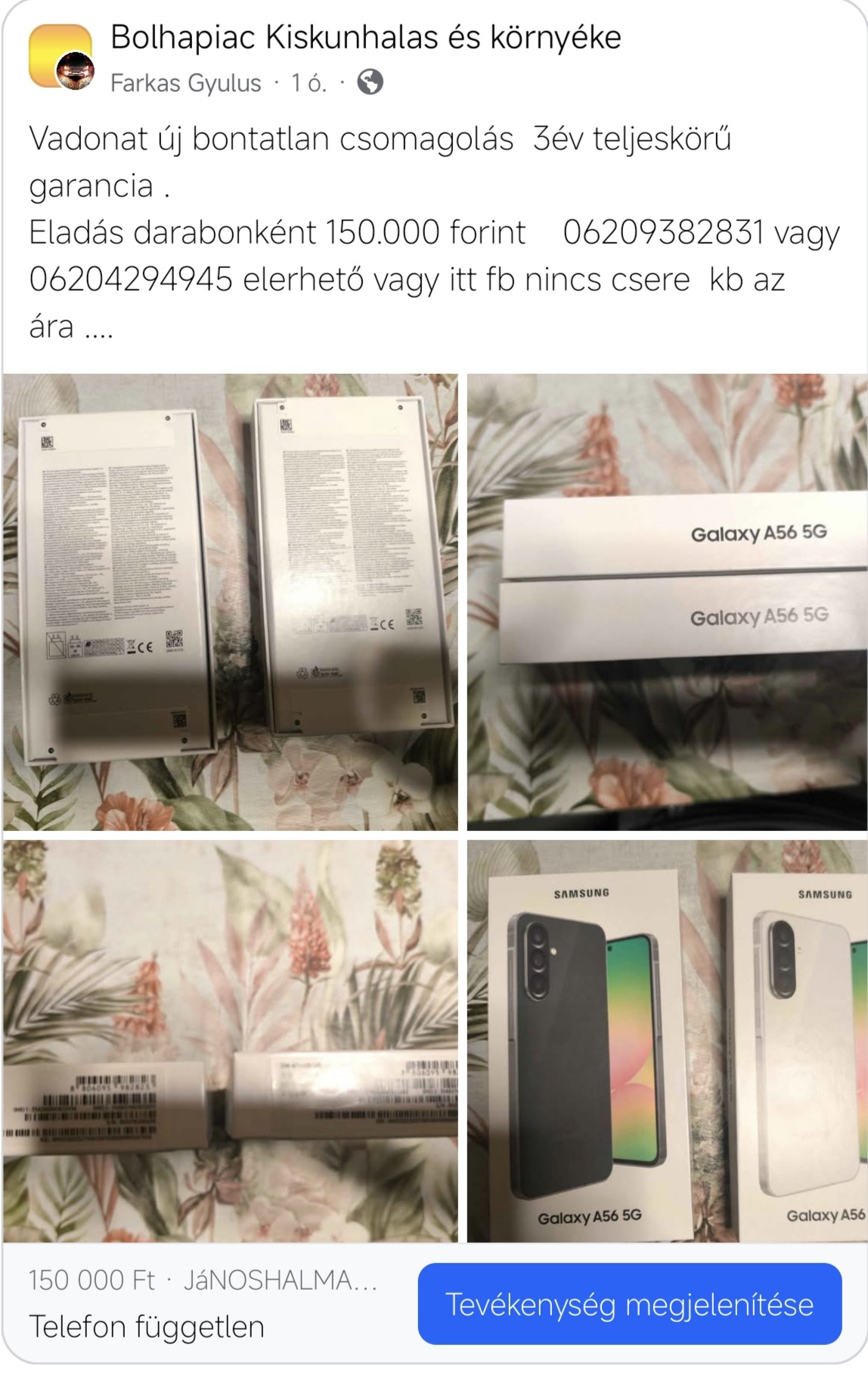 Eladás a telefonon ként 150.000 ezer forint darabonként az ár 1 telefonra értetődő