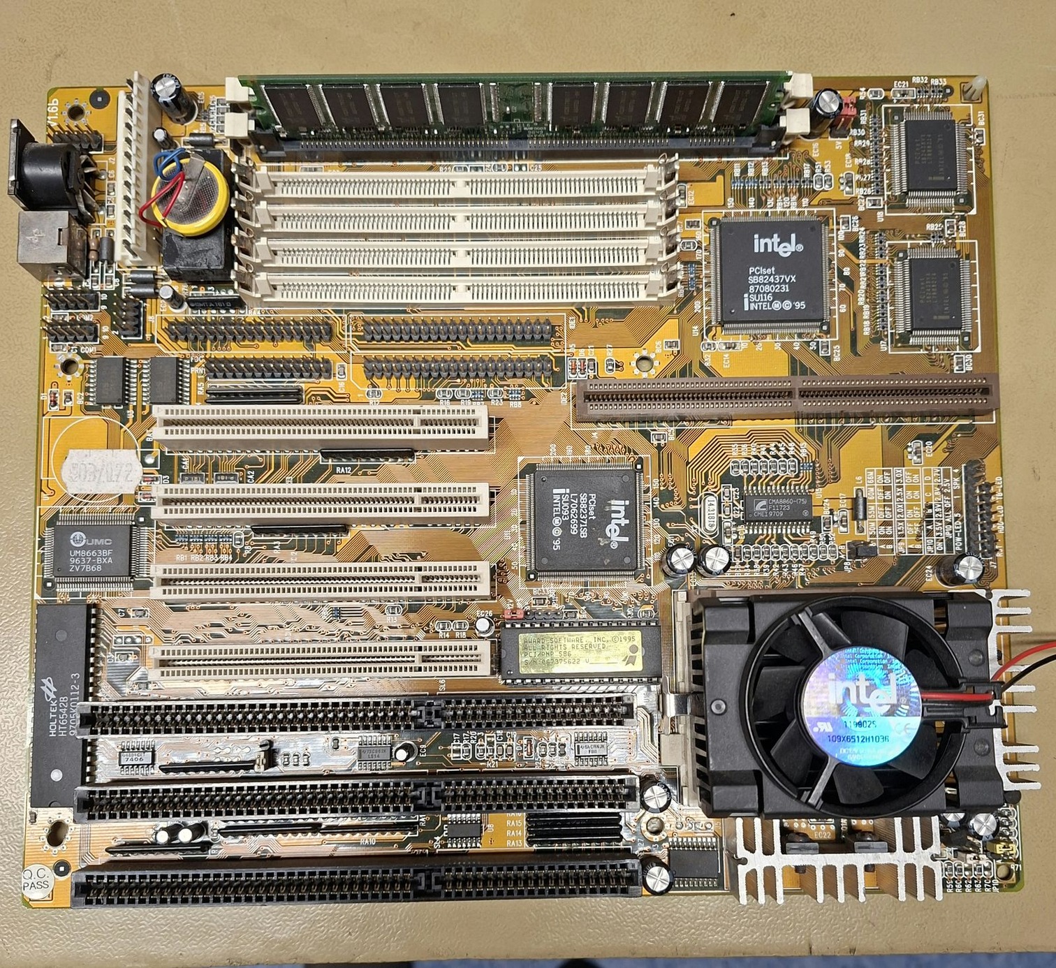 A lap tesztelt mindegyik ram konfigurációval hibátlan. (Nagyobb SD ramokat nálam nem fogadta el). A cmos elemet én forrasztottam rá azt még véglegesítem .A laphoz adok egy ISA buszos ALS100 chipes hangkártyát és egy S3Trio64 VGA kártyát.A harmadik opciós konfignál foxpost az árban.