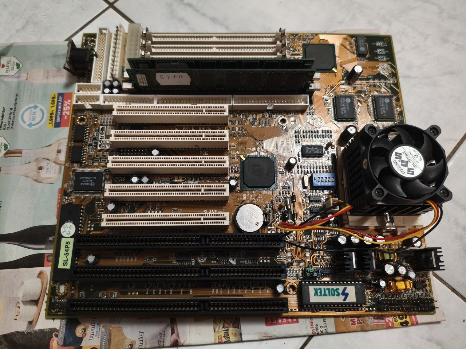 Soltek SL-54P5 alaplap CPU-val, hűtővel, RAM-mal