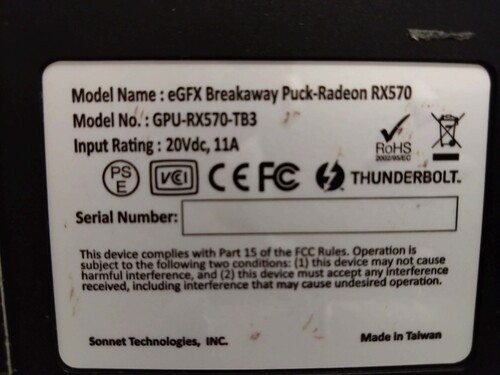 Eladó egy használt Sonnet Radeon rx 570 Thunderbolt 3-as külsö videókártya saját tápjával.