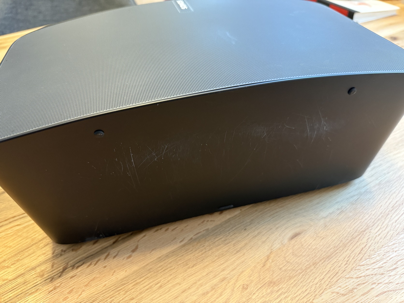 Az alján használatból eredő karcok találhatóak, így oldalra fordított állapotban az egyik oldala nem esztétikus.