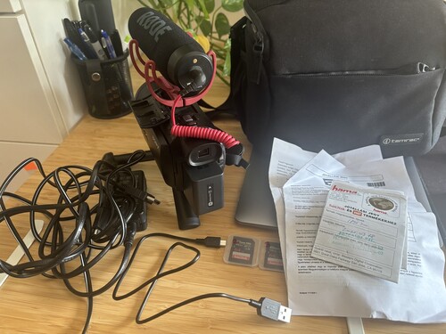 Képekkel ellentétben a kamera papírjai, gyári micro usb és mini HDMi kábelei nincsenek meg, 1db SD jár hozzá és a mini tripod sincs meg.