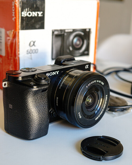 Selling my Sony A6000 MILC camera with the original 16–50mm kit lens due to upgrading to a higher category.